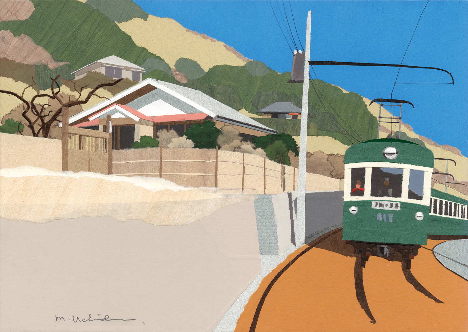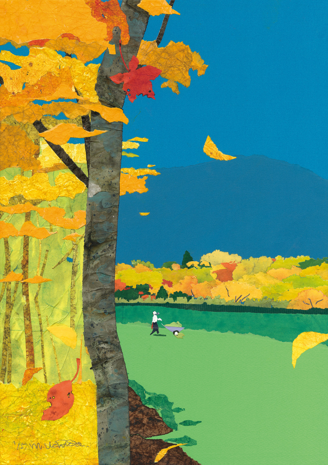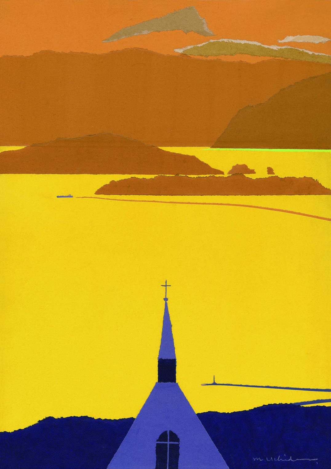 日本のはり絵は和紙を用いることが一般的ですが、内田正泰のはり絵は洋紙を用いることが大きな特徴です。