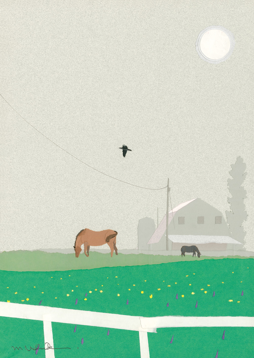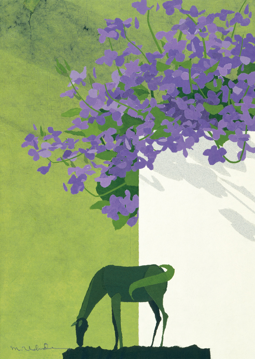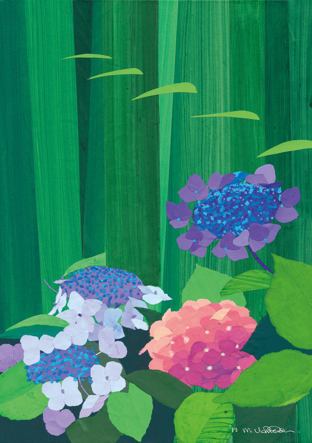 日本のはり絵は和紙を用いることが一般的ですが、内田正泰のはり絵は洋紙を用いることが大きな特徴です。