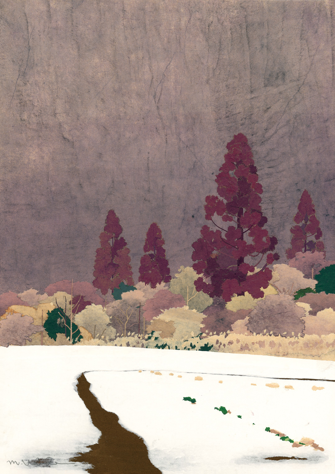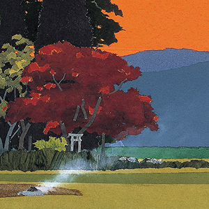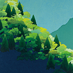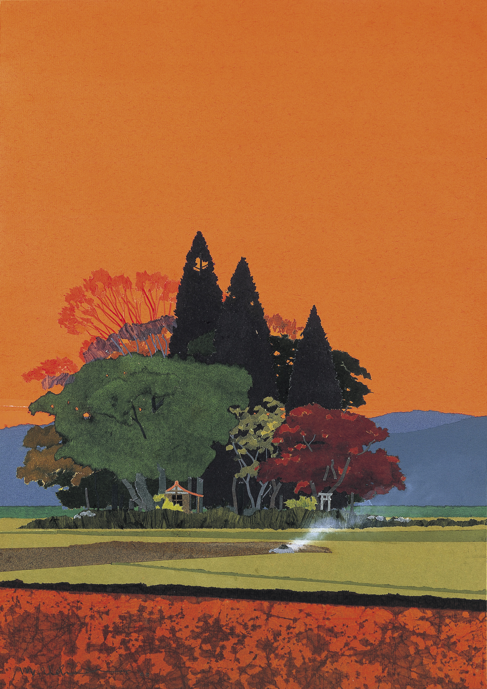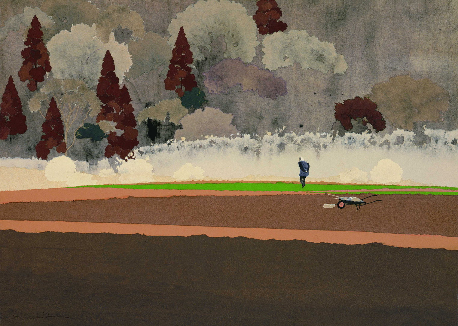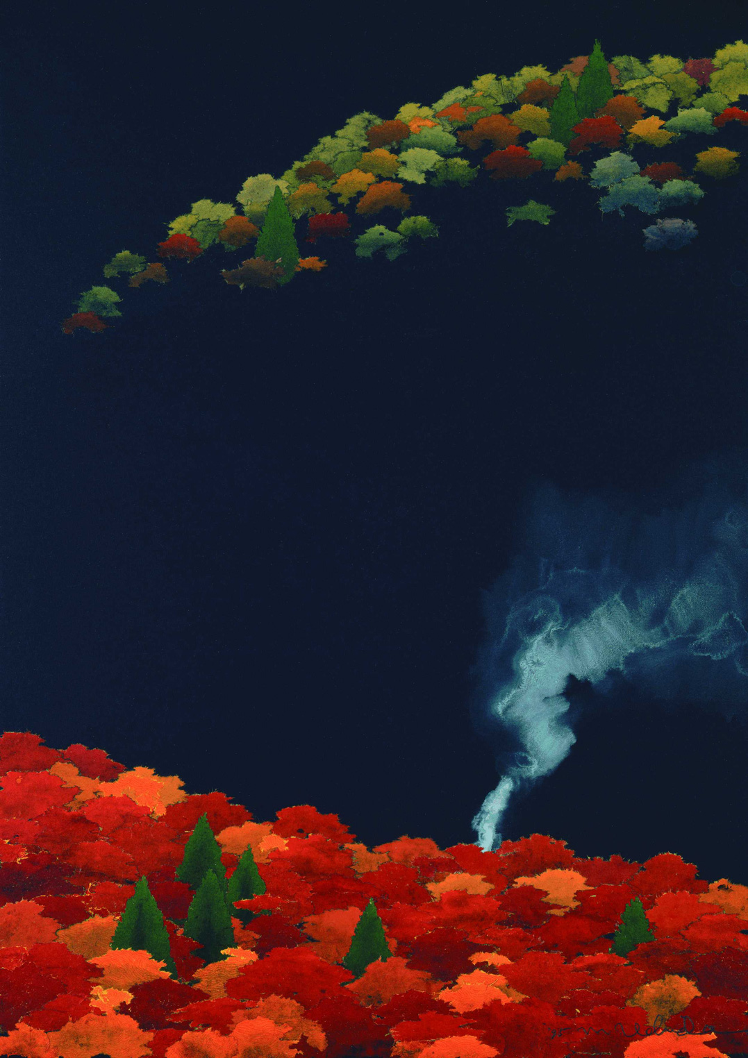 - 十和田湖を訪ねた折近くで見た杜、一人の老婆が無心に手を合わせ拝んでいた。何か自立の中の人間の原点を垣間見た様に感じ帰宅してから直ぐに制作した。四季を頭の中で空想して4作品を連日制作した。私の夢の一連作。