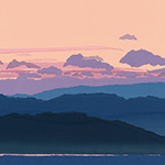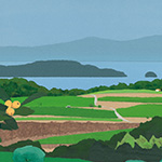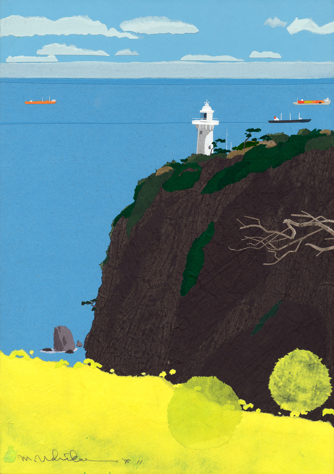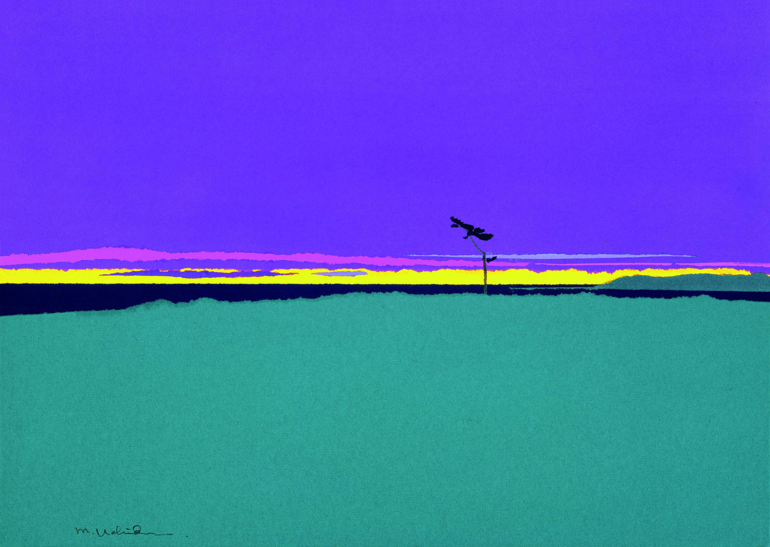 - 夜明けの大地から大島の方を見ていると水平線から色が出てきた。細かく見ているとその中に微妙なトーンが有って。人間の朝だゾと呼びかけている感じがした。海風に耐える一本の松が主人公かもしれない
