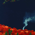 - 全山紅葉の秋。山影の斜面から炭焼の一条の煙が見えた。昔の人もこんな景色を見たんだろーな