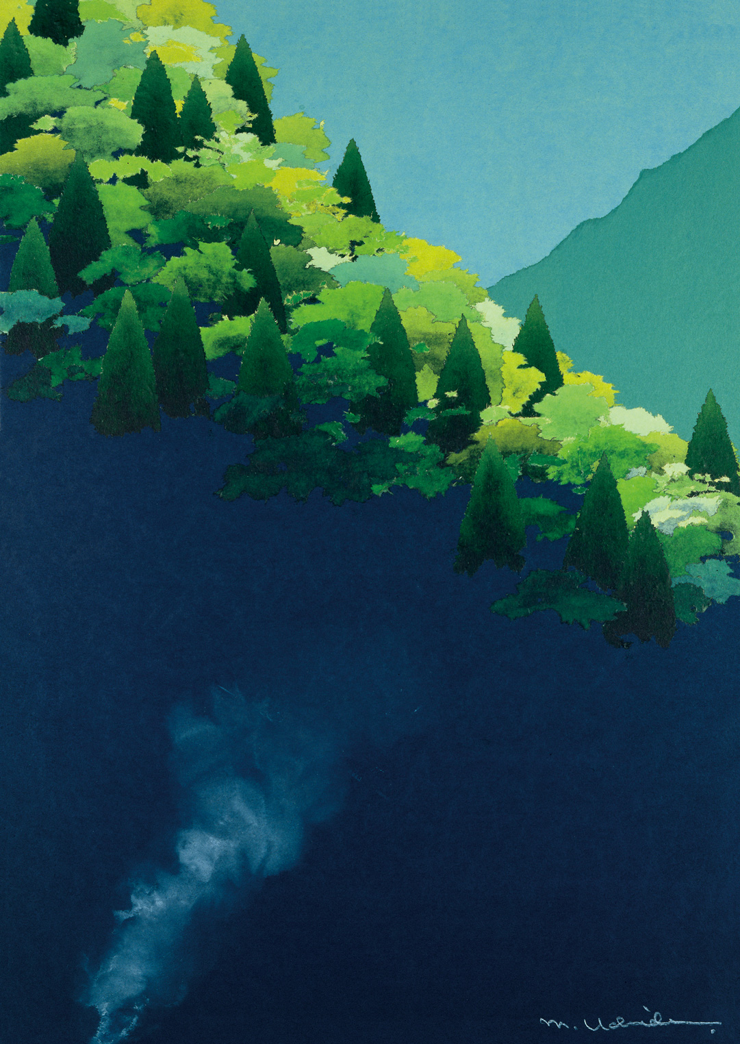 - 湖面に降りた鳥が音も無く動いている。昼なお暗い深い森の中を風が貫けていく。時が止まった瞬間。