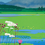 - 渓流釣りでヤマメでも釣ったのでしょうか?河原で火を焚いている煙が見える。新緑に染まる渓流は訪れる人を素直にしてくれる。