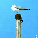 - 西伊豆、岩地漁港の夕方。高い杭棒の先に錆びた缶がかぶせてあって、その上にカモメが止まっていた。側に寄ってみたが逃げようとしない。平和だナー。静かだナーと心が和んだ。
